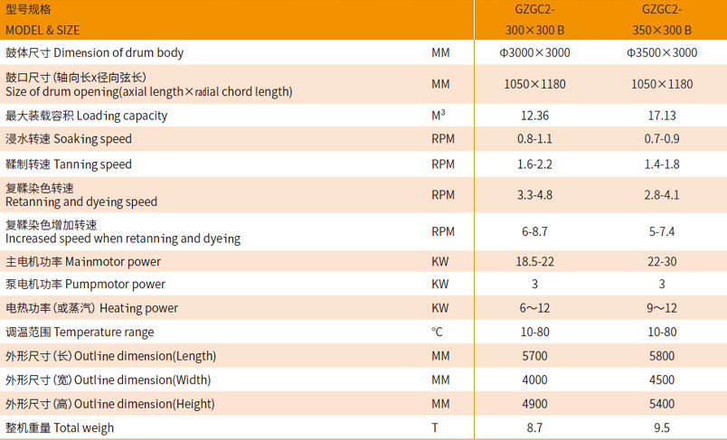 The drum can reduce water consumption from soaking,tanning and dyeing process and consumption of chemical raw material .There is a new structure inside the drum,so that it makes leather softer and dyeing more even in the same process time.It can load over 33% more than ordinary drums,the loading capacity can reach to 60—70% of the drum volume.